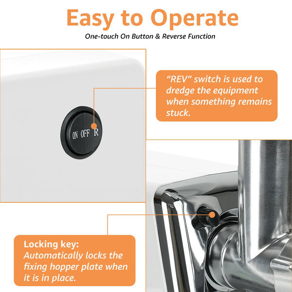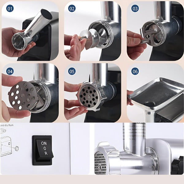 Această mașină nu se limitează doar la tocat carne – este perfectă pentru a prepara burgeri, cârnați de casă, chiftele și multe altele.