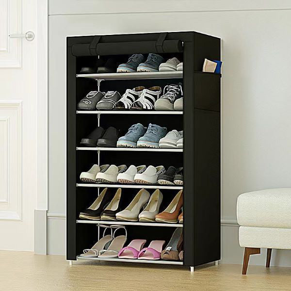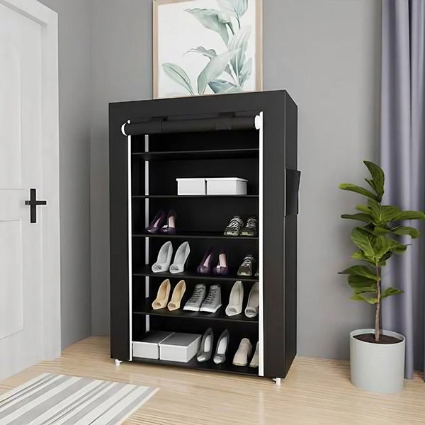 Pantofarul portabil și pliabil OMARA este soluția ideală pentru iubitorii de încălțăminte. Cu o capacitate generoasă de stocare, poate găzdui până la 27 de perechi de pantofi, asigurându-se că aceștia rămân curați și organizați. Pantofarul măsoară 58x28,5x107 cm (înălțime x lungime x lățime), iar fiecare raft are aproximativ 17 cm înălțime. Poți să-l amplasezi oriunde în casă, de la dressing până la hol.